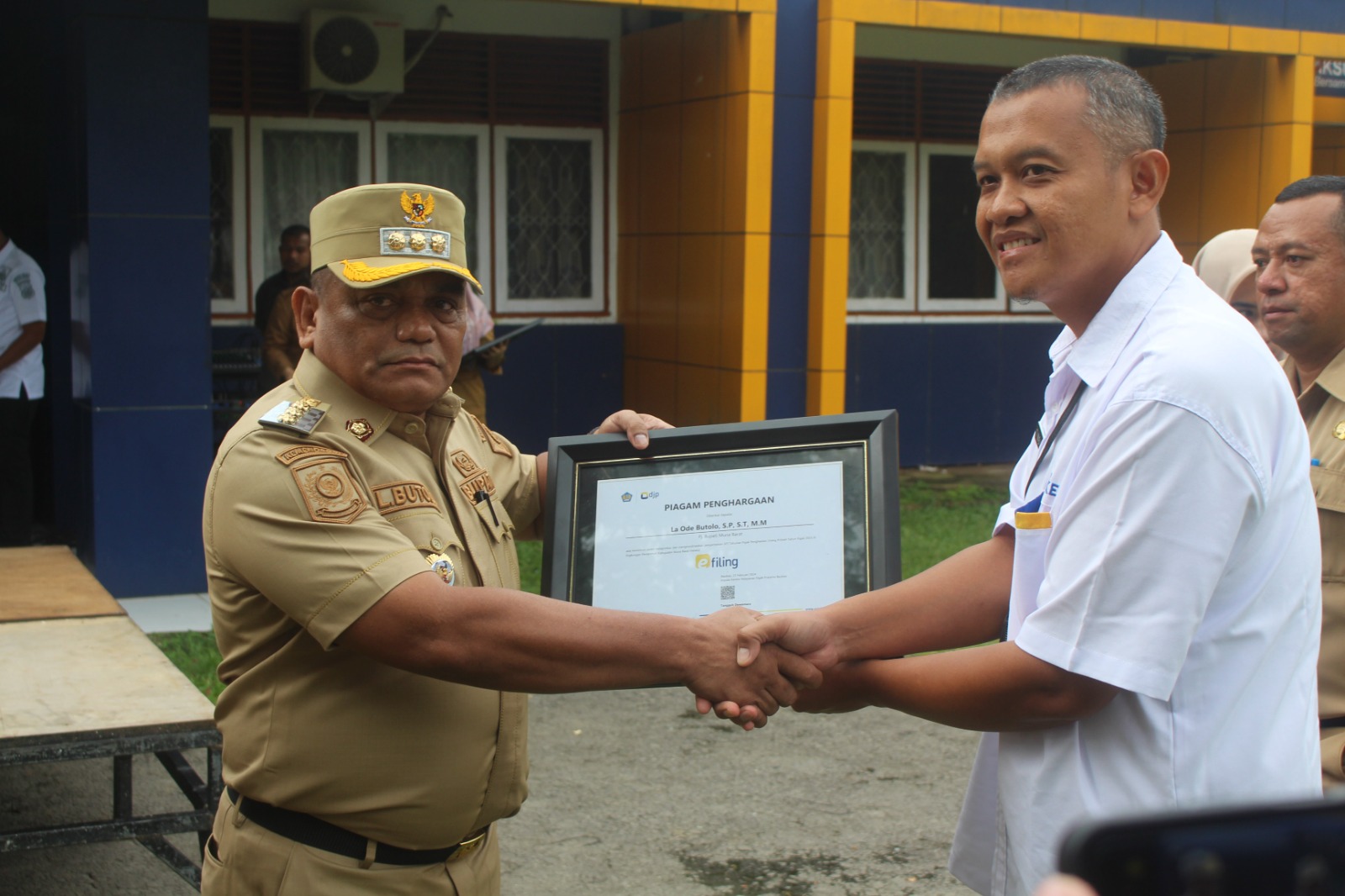 Pj. Bupati Muna Barat La Ode Butolo membuka kegiatan dengan memberikan sambutan. Dalam sambutannya, beliau menekankan akan pentingnya menjalankan kewajiban perpajakan yaitu pelaporan SPT Tahunan PPh Orang Pribadi. Acara dilanjutkan dengan pemberian piagam penghargaan dan cendera mata sebagai bentuk apresiasi KP2KP Raha kepada Pemerintah Kabupaten Muna Barat.
