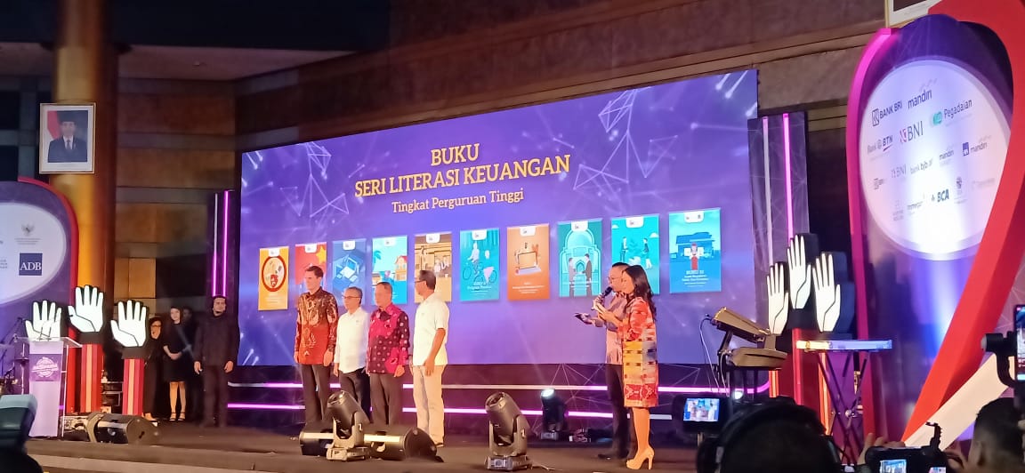 Otoritas Jasa Keuangan (OJK) meluncurkan Buku Seri Literasi Keuangan Tingkat Perguruan Tinggi dalam kegiatan Aksi Mahasiswa dan Pemuda Indonesia Menabung (AKSiMUDA) 2019 di Auditorium Gedung BPPT, Jakarta (Selasa, 30/07).