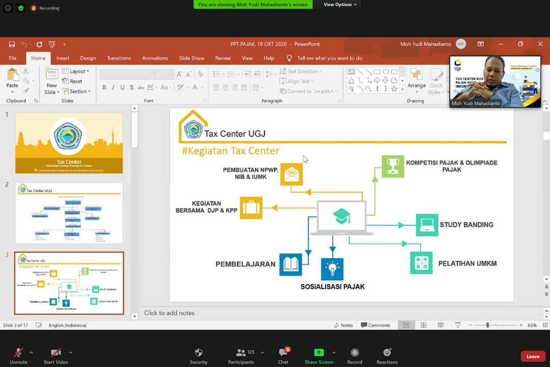 Kanwil DJP Jawa Barat (Jabar) II mengadakan acara Seminar Pembinaan Tax Center dengan tema "Tax Center Kuat, Pajak Kuat, Indonesia Maju" melalui media telekonferensi di Bekasi (Selasa, 20/10). Kegiatan ini dihadiri oleh 12 Tax Center di Lingkungan Kanwil DJP Jawa Barat II.