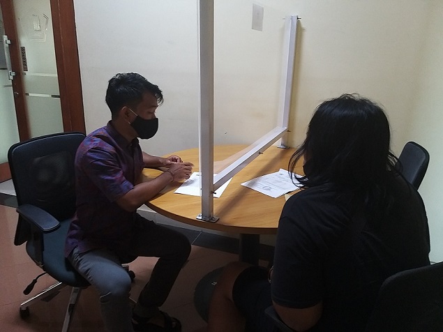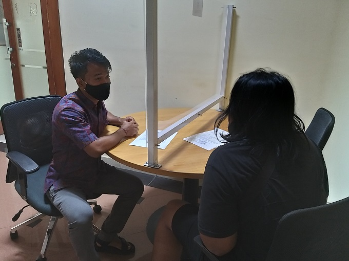 Konsultasi berlangsung secara tatap muka dengan tetap mematuhi protokol kesehatan berupa kaca pembatas atau sekat antara petugas dengan wajib pajak dan mengenakan masker, sebelum wajib pajak bersangkutan menuju ke Ruang Seksi Penagihan, terlebih dahulu membuat janji terkait kapan akan datang ke kantor untuk berkonsultasi, wajib pajak sudah melalui proses pemeriksaan suhu tubuh di pintu masuk utama kantor dan diimbau untuk mencuci tangan terlebih dahulu di tempat yang telah disediakan.