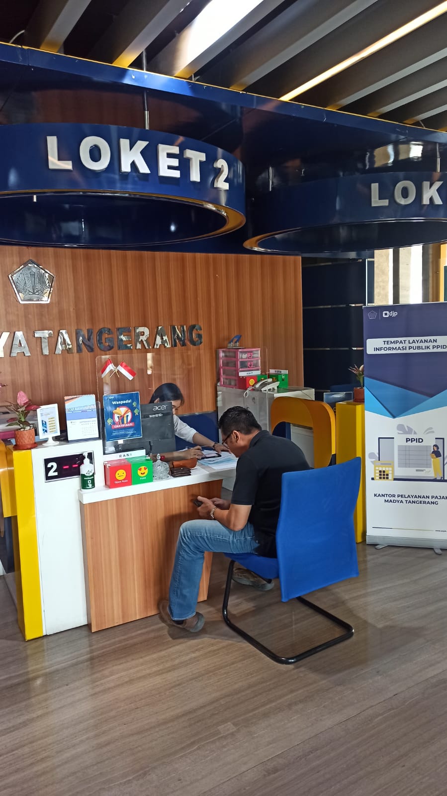 Wajib pajak mendatangi loket mandiri Kantor Pelayanan Pajak (KPP) Madya Tangerang untuk membuat kode billing di Gedung Menara Top Food, Alam Sutera, Jalan Jalur Sutera Barat No.3, RT.003/RW.006, Panunggangan Timur, Pinang, Kota Tangerang, Banten (Senin, 25/9).