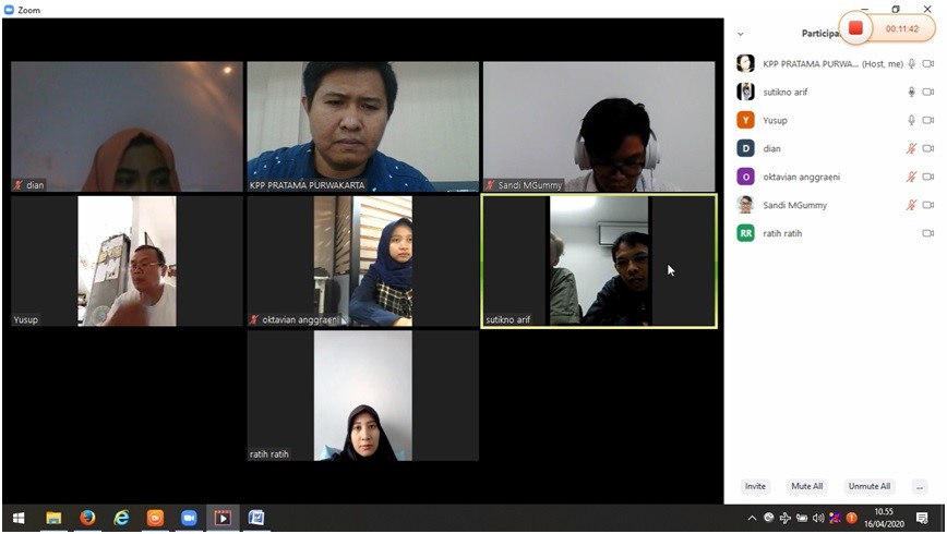 KPP Pratama Purwakarta mengadakan Kelas Pajak secara Daring (Online) terkait Asistensi Pelaporan SPT Tahunan Orang Pribadi melalui e-Filing dengan menggunakan aplikasi Zoom Meeting di tempat masing-masing (Kamis, 16/4). Kegiatan yang diikuti oleh enam orang peserta ini berlangsung mulai pukul 09.00-12.00 WIB.