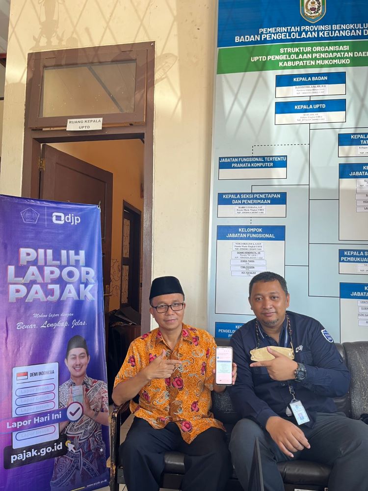 Kepala Unit Pelaksana Teknis Daerah (UPTD) Pengelolaan Pendapatan Daerah Kabupaten Mukomuko, Suryadi, adalah salah satu wajib pajak yang diberikan asistensi pelaporan SPT tahunan orang pribadi. Pada kesempatan tersebut Suryadi merasakan kemudahan melakukan pelaporan SPT Tahunan orang pribadi secara online. “Terima kasih buat teman-teman dari KP2KP Mukomuko yang telah memberikan asistensi pelaporan SPT di Kantor Samsat Mukomuko. Pelaporannya cukup mudah dan cepat,” ujar Suryadi pada saat dimintakan testimoni.