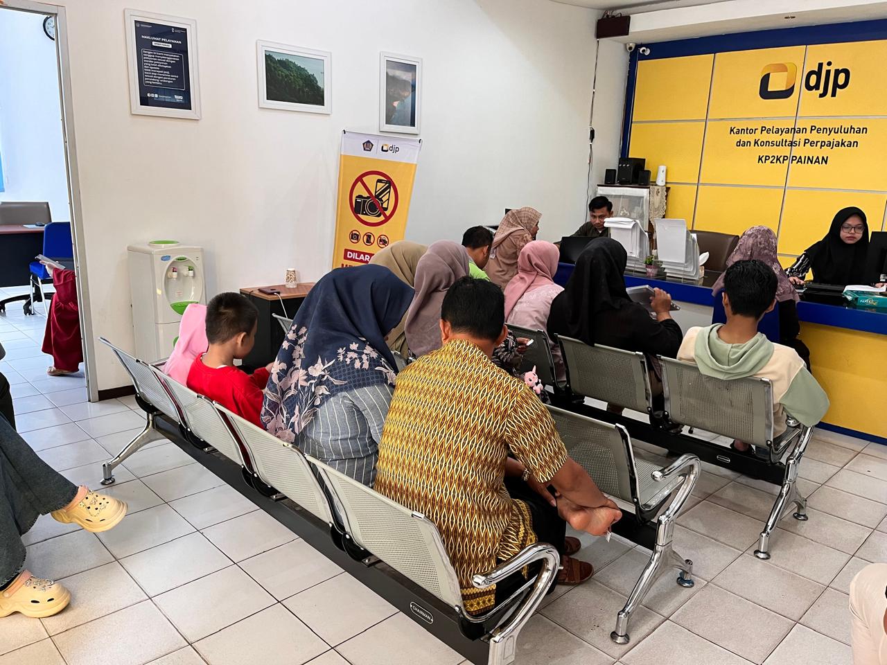 Menjelang tenggat waktu pelaporan Surat Pemberitahuan (SPT) Tahunan Orang Pribadi 31 Maret 2026, Kantor Pelayanan, Penyuluhan, dan Konsultasi Perpajakan (KP2KP) Painan tampak membuka layanan khusus untuk memberi kesempatan bagi wajib pajak yang tak sempat datang di hari kerja untuk tetap menunaikan kewajibannya tepat waktu (Sabtu, 28/2).