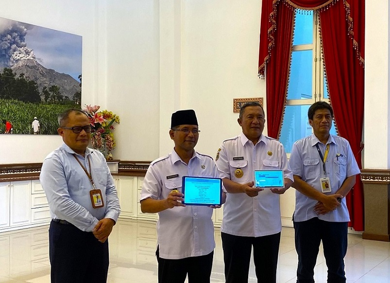 Kepala Kantor Wilayah Direktorat Jenderal Pajak (DJP) Jawa Tengah II Slamet Sutantyo dan Kepala Kantor Pelayanan Pajak Pratama (KPP) Boyolali Mohamad Rifki Rachman mendampingi Bupati Boyolali Mohamad Said Hidayat dan Wakil Bupati Boyolali Wahyu Irawan menyampaikan SPT Tahunan tahun pajak 2022 melalui e-filing di Kantor Bupati Boyoalali (Rabu,11/1).