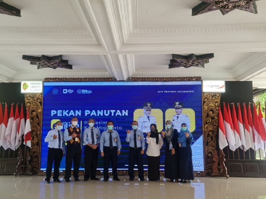 Bupati Mojokerto Ikfina Fahmawati beserta Sekretaris Daerah Kabupaten Mojokerto dan seluruh Kepala Dinas di lingkungan Pemerintah Kabupaten Mojokerto menghadiri acara Pekan Panutan Penyampaian SPT Tahunan Orang Pribadi di Pendopo Graha Maja Tama, Mojokerto (Rabu, 09/02).
