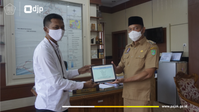 Bupati Sukamara Windu Subagio menyampaikan Surat Pemberitahuan (SPT) Tahunan Orang Pribadi melalui e-Filling pada situs djpoline.pajak.go.id di Kantor Bupati Sukamara (Jumat, 19/2). Penyampaian SPT itu didampingi langsung oleh Kepala KP2KP Sukamara Murdono.