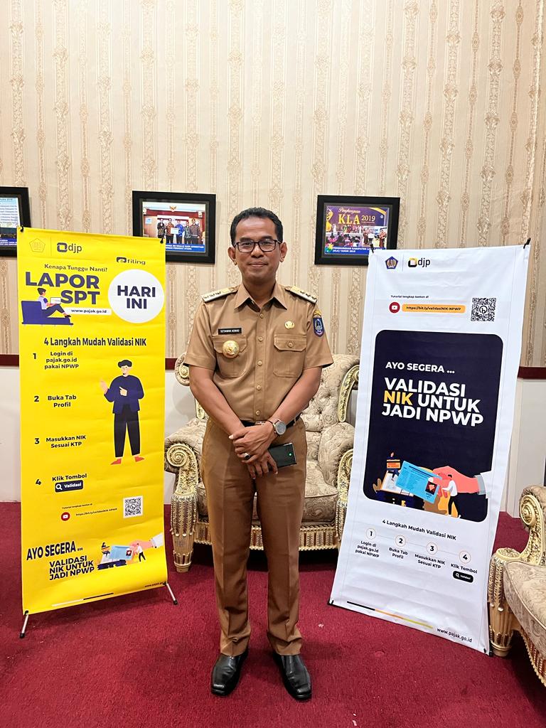 Setiawan Aswad, Pj. Bupati Takalar dalam video singkat menyampaikan imbauan kepada seluruh paratur Sipil Negara (ASN) dan masyarakat di wilayah Kabupaten Takalar untuk segera melakukan Pelaporan SPT Tahunan tepat waktu dan segera melakukan pemadanan NIK sebagai NPWP. “Mari kita bersama-sama melaporkan SPT Tahunan dan melakukan pemadanan NIK sebagai NPWP secara online dengan e-filing melalui laman djponline.pajak.go.id yang bisa diakses dimanapun dan kapanpun. lebih awal, lebih nyaman,” ujar Setiawan Aswad.