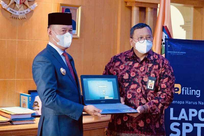 Dalam Rangkaian Pekan Panutan tersebut, Bupati Tebo Sukandar didampingi oleh Wakil Bupati Tebo dan Sekretaris Daerah Tebo melakukan pelaporan SPT Tahunan bersama.