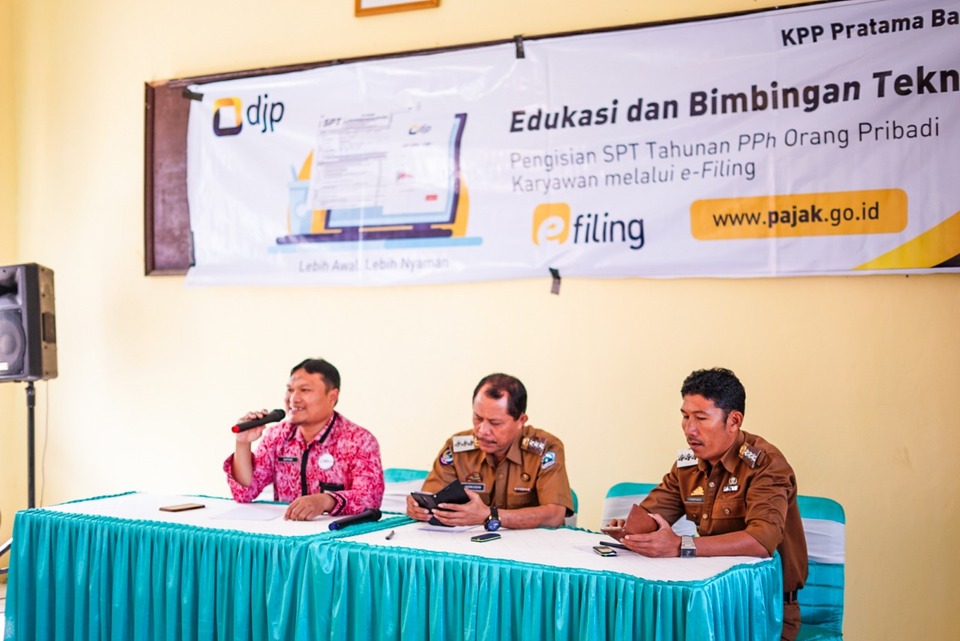 Kantor Pelayanan Pajak (KPP) Pratama Bantaeng mengadakan Kegiatan Edukasi dan Bimbingan Teknis Pengisian SPT Tahunan Orang Pribadi melalui e-Filing di Kantor Camat Uluere (Selasa, 3/3). Kegiatan ini dihadiri oleh seluruh kepala desa dan perangkat desa di lingkungan Kecamatan Uluere dan Sinoa Kabupaten Bantaeng.