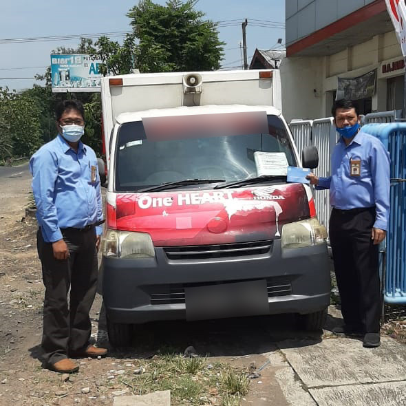 Kepala Seksi Penagihan Sumarso dan Juru Sita KPP Pratama Ngawi melakukan penyitaan atas aset berupa satu unit mobil Daihatsu Grand Max.