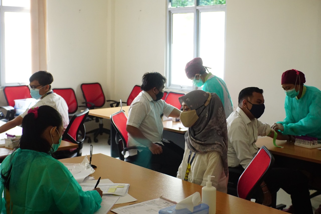 Kantor Pelayanan Pajak (KPP) Pratama Ketapang kembali mengadakan tes cepat sebagai upaya pencegahan penyebaran Virus Covid-19 di Aula Lantai 1 KPP Pratama Ketapang (Senin, 14/12). Bekerja sama dengan RS Fatimah Ketapang, KPP Pratama Ketapang telah melaksanakan tes cepat sebanyak lima kali yang dilakukan setiap bulan. Seluruh ASN maupun pegawai non PNS KPP Pratama Ketapang mengikuti tes cepat sebagai upaya pencegahan penyebaran Covid-19.
