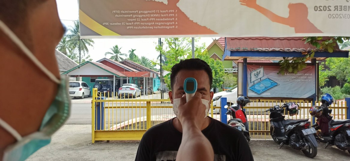 Selain mengadakan tes cepat tiap bulan, KP2KP Kandangan juga menerapkan protokol kesehatan seperti pemeriksaan suhu tubuh dan menyediakan hand-sanitizier di tiap meja TPT.