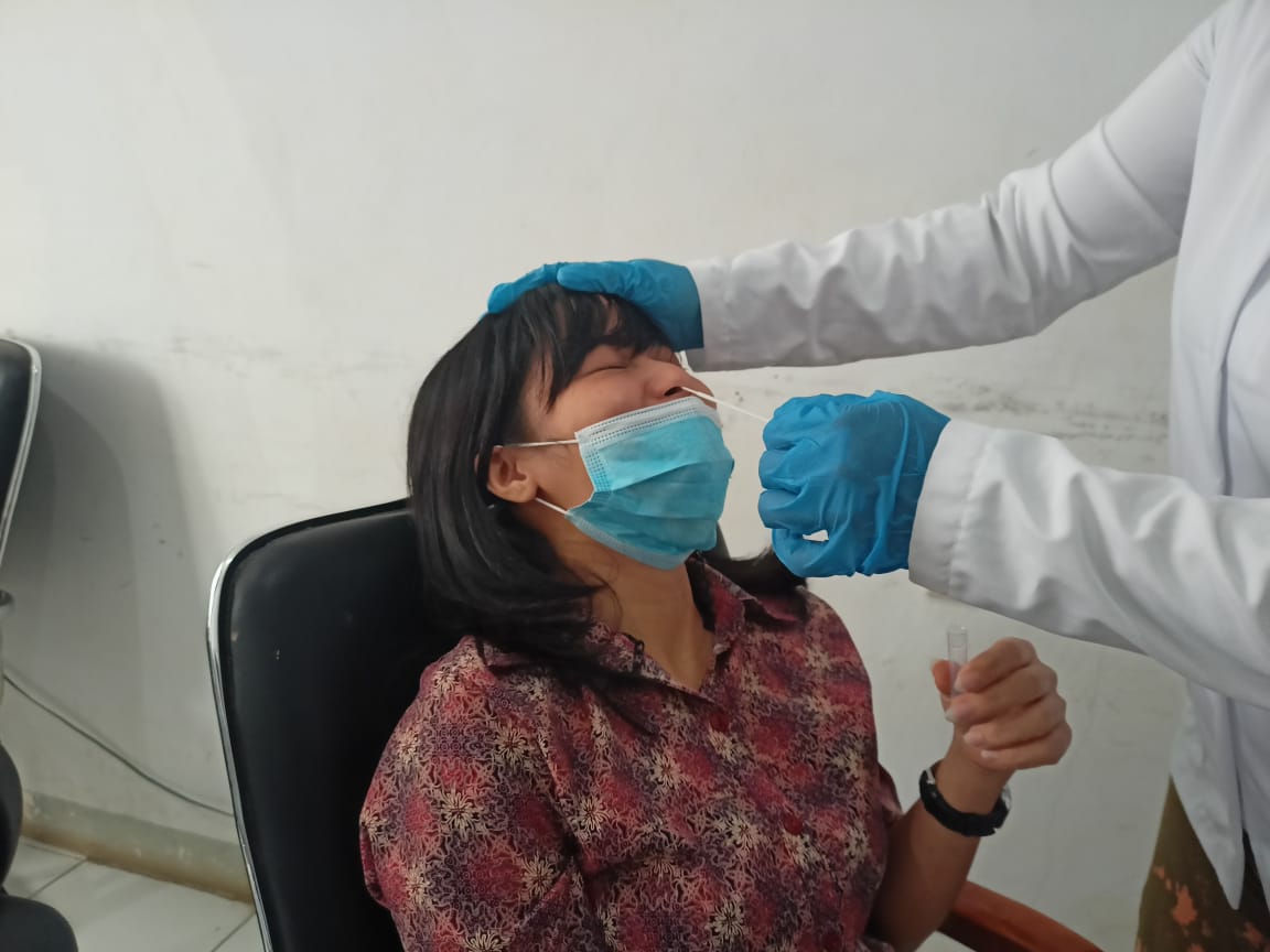 Kantor Pelayanan, Penyuluhan, dan Konsultasi Perpajakan (KP2KP) Makale melaksanakan tes usap antigen di ruang aula KP2KP Makale, Kabupaten Tana Toraja (Selasa, 9/2). Kegiatan ini diikuti oleh seluruh pegawai KP2KP Makale dengan tetap menjalankan protokol kesehatan Covid-19.
