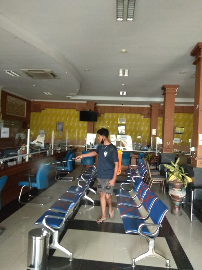 Kantor Pelayanan Pajak (KPP) Pratama Gianyar kembali melaksanakan penyemprotan rutin disinfektan di Tempat Pelayanan Terpadu (TPT) KPP Pratama Gianyar (Sabtu, 13/2). Kegiatan penyemprotan disinfektan ini dilakukan untuk mencegah penyebaran virus Covid-19 di KPP Pratama Gianyar.