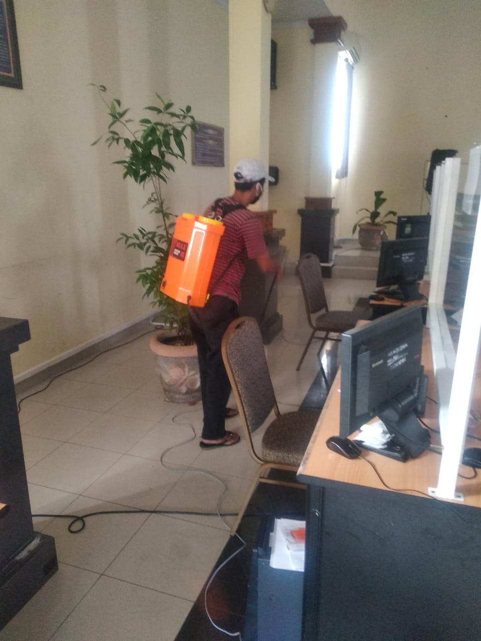 Penyemprotan disinfektan ini juga untuk menjaga kebersihan tempat pelayanan kepada wajib pajak seperti ruangan TPT, loket penerimaan dan konsultasi SPT Tahunan manual, aula yang digunakan untuk pelaksanaan kelas pajak e-Filing, ruangan setiap seksi, gudang maupun area luar kantor seperti lapangan parkir, area merokok, dan tempat antrean wajib pajak.