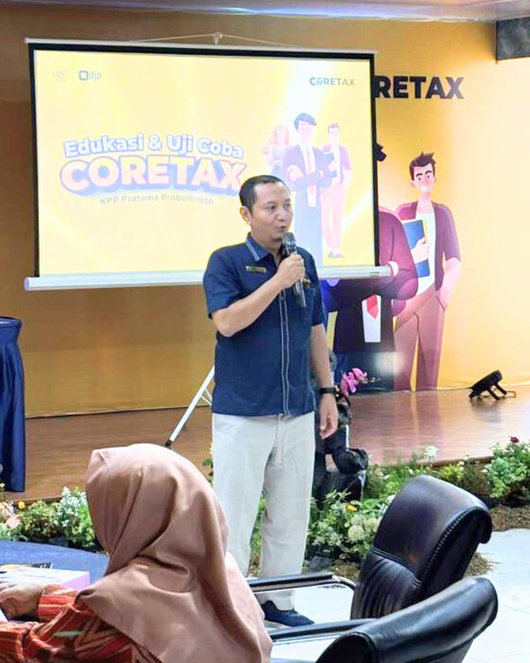 Kepala Seksi Pelayanan Kantor Pelayanan Pajak (KPP) Pratama Probolinggo Luhur Ura Kusuma Dinata menyampaikan pentingnya reformasi sistem perpajakan ini sebagai upaya DJP untuk tidak hanya memperbarui tata kelola pajak, tetapi juga mempererat sinergi antarinstansi pemerintah. Hal tersebut ia sampaikan saat kegiatan sosialisasi aplikasi Coretax di Aula Semeru KPP Pratama Probolinggo (Rabu, 16/10).