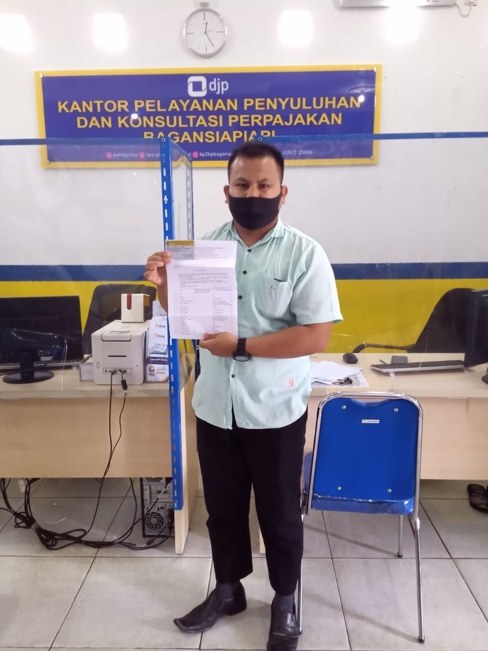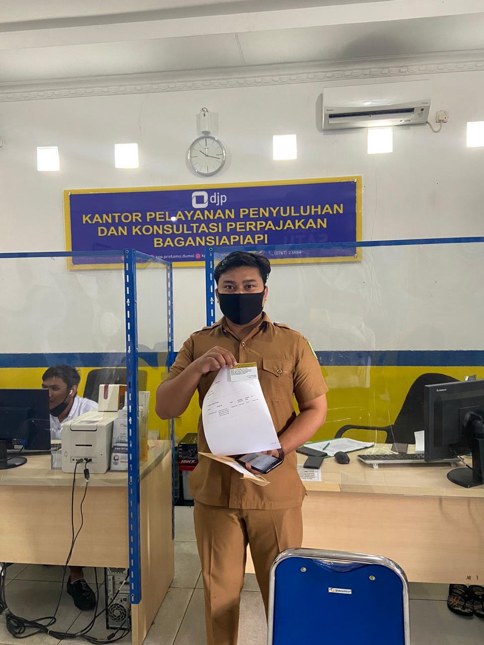 Sesuai dengan Peraturan Menteri Keuangan nomor PMK.231/PMK.03/2019, Kepenghuluan (Desa) di Kabupaten Rokan Hilir sudah terlebih dahulu diminta untuk mengisi Formulir Perubahan Data dan Formulir Aktivasi EFIN dan mengirimkannya ke alamat KPP Pratama Dumai. Hal ini bertujuan agar Kepenghuluan (Desa) di Kabupaten Rokan Hilir yang berhak memiliki NPWP Instansi Pemerintah sesuai dengan yang diatur di PMK tersebut, dapat memperoleh Nomor Pokok Wajib Pajak baru. Dan pada hari ini, kartu NPWP Instansi Pemerintah Desa sudah dapat diambil di KP2KP Bagansiapiapi.