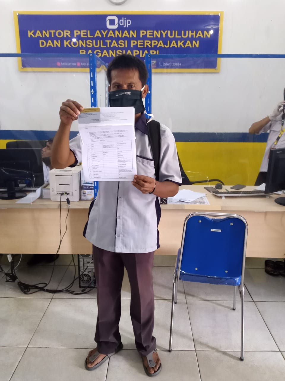 Perwakilan Wajib Pajak Kepenghuluan (Desa) di Kabupaten Rokan Hilir (Rohil) mendatangi Kantor Pelayanan, Penyuluhan dan Konsultasi Perpajakan (KP2KP) Bagansiapiapi untuk menerima Kartu NPWP Instansi Pemerintah Desa, bertempat di Tempat Pelayanan Terpadu (TPT) kantor, Kabupaten Rokan Hilir (Senin, 06/07).