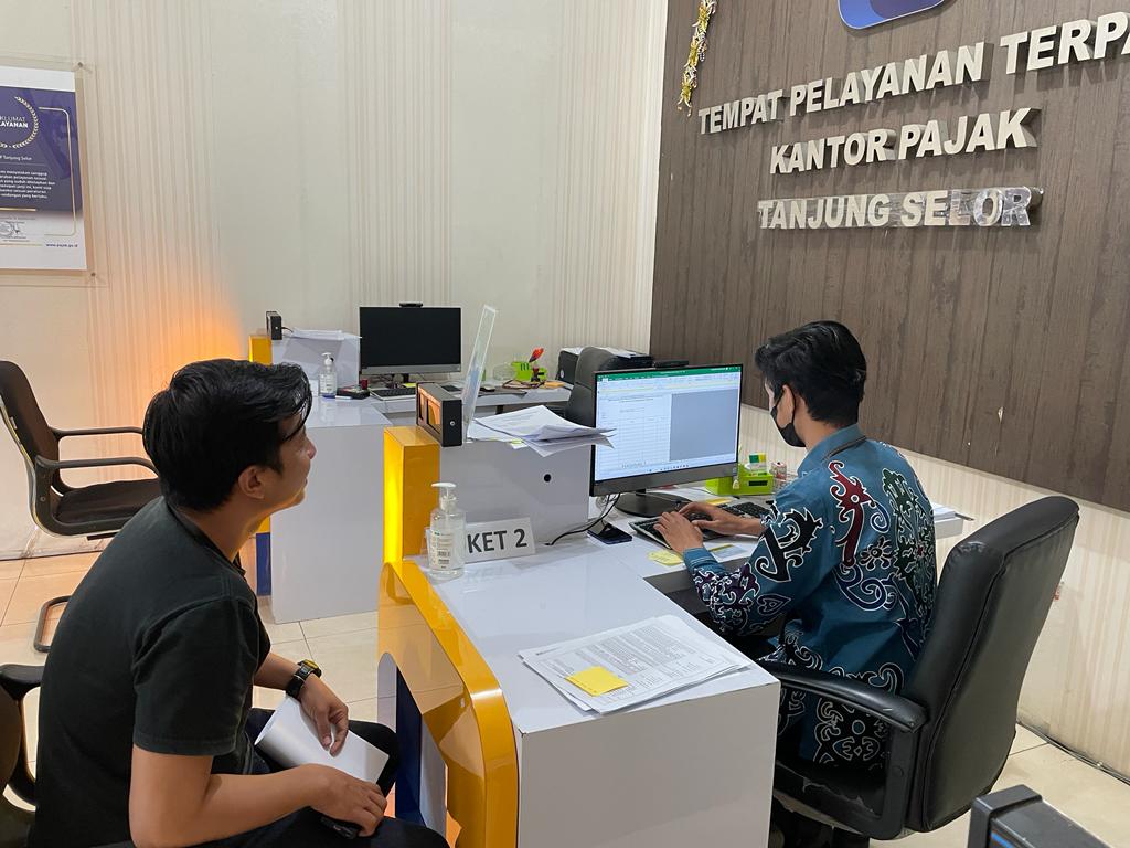 Kantor Pelayanan, Penyuluhan, dan Konsultasi Perpajakan (KP2KP) Tanjung Selor memberikan edukasi terhadap wajib pajak yang melakukan konsultasi Surat Pemberitahuan (SPT) Tahunan di Tempat Pelayanan Terpadu (TPT) KP2KP Tanjung Selor, Kabupaten Bulungan (Selasa, 3/1). Adhy Prasetya Nugraha selaku wajib pajak mendatangi KP2KP Tanjung Selor untuk melaporkan SPT Tahunan Orang Pribadi serta melakukan validasi NIK menjadi NPWP.