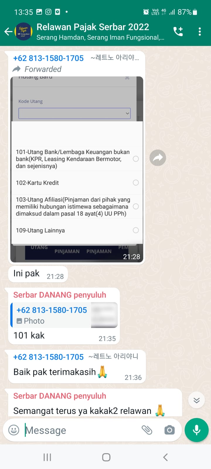 Kantor Pelayanan Pajak (KPP) Pratama Serang Barat melakukan pendampingan Relawan Pajak melalui saluran WhatsApp sebagai olusi atas kendala yang ditemui para relawan pajak saat melakukan asistensi pengisian SPT Tahunan kepada Wajib Pajak dari KPP Pratama Serang Barat, Kota Serang (Senin, 21/03).