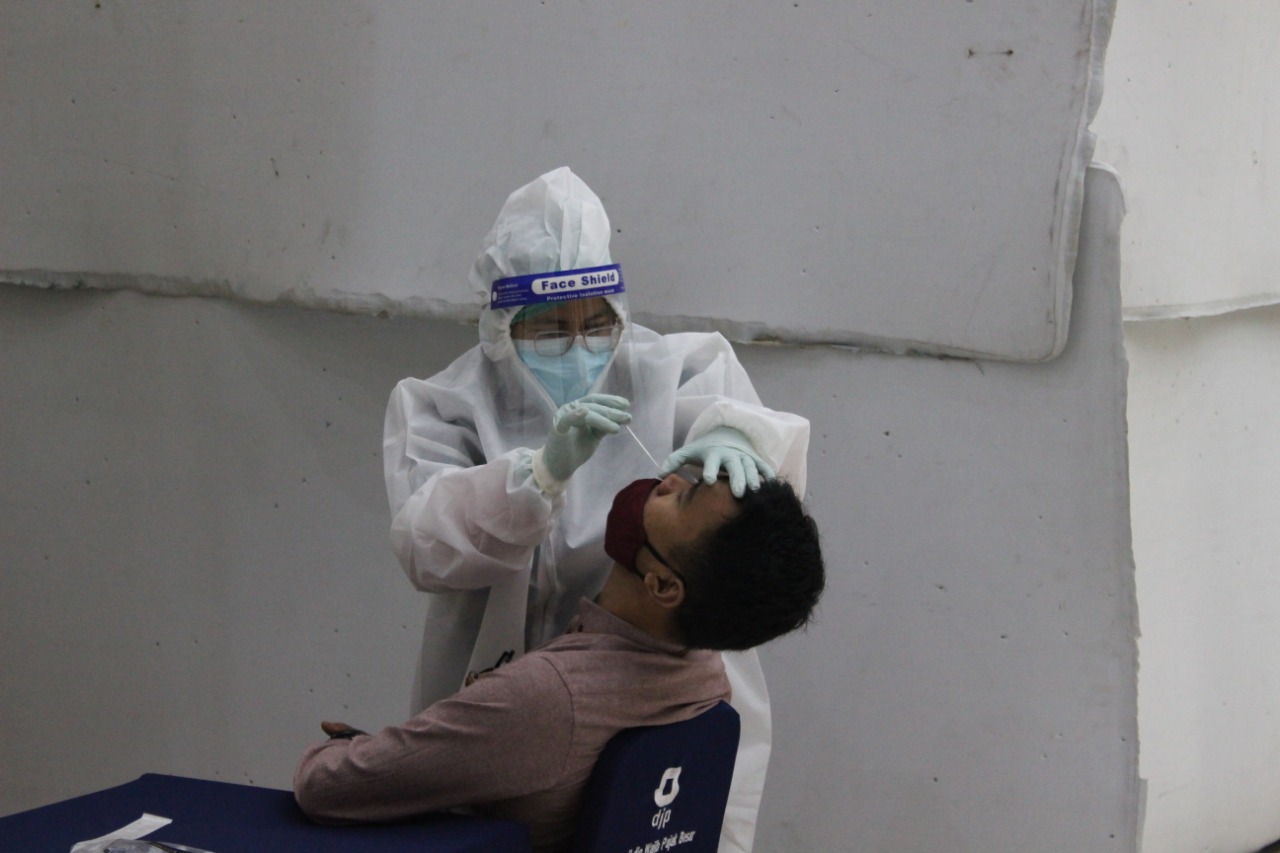 Seluruh pegawai baik yang ASN maupun Non ASN mengikuti tes usap pada bulan November. Pelaksanaan pengambilan sampel dilakukan dengan menerapkan protokol kesehatan secara ketat dan membagi jadwal tiap pegawai untuk menghindari terjadinya kerumunan.