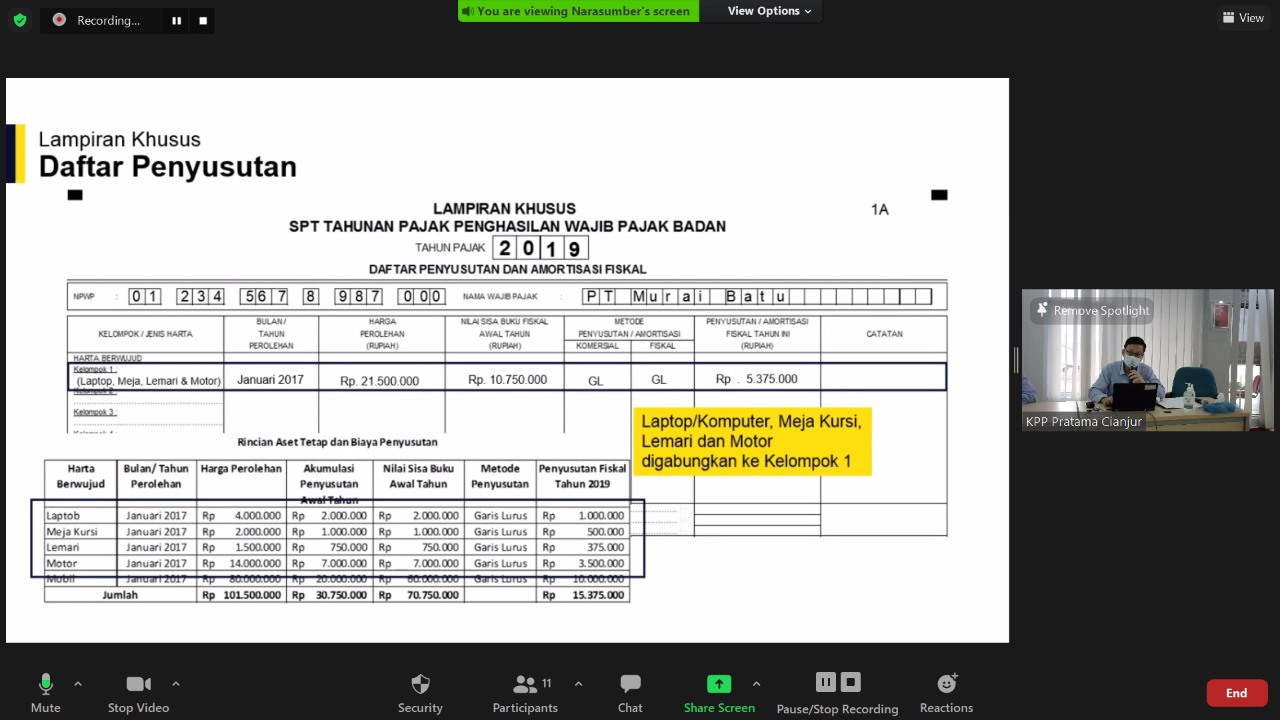 Menjelang jatuh tempo pelaporan Surat Pemberitahuan (SPT) Tahunan Pajak Penghasilan (PPh) untuk Wajib Pajak Badan tahun pajak 2020, KPP Pratama Cianjur kembali mengadakan Kelas Pajak Daring (KPD) dengan topik bahasan Tata Cara Pengisian dan Pelaporan SPT Badan 1771 di Cianjur (Rabu, 28/4).