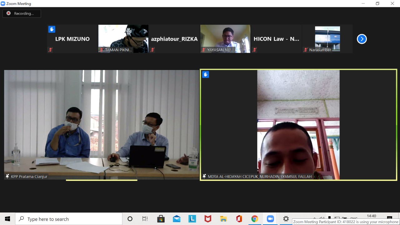 Kelas Pajak Daring menggunakan aplikasi Zoom Meeting ini berlangsung pukul 14.00 sampai dengan 15.00 WIB. Account Representative KPP Pratama Cianjur Ari Setiawan dan Himawan Avireza mengisi acara dengan memberikan penjelasan teknis tata cara pelaporan SPT PPh Badan 1771. Acara ditutup dengan sesi tanya jawab dengan peserta. (MND)