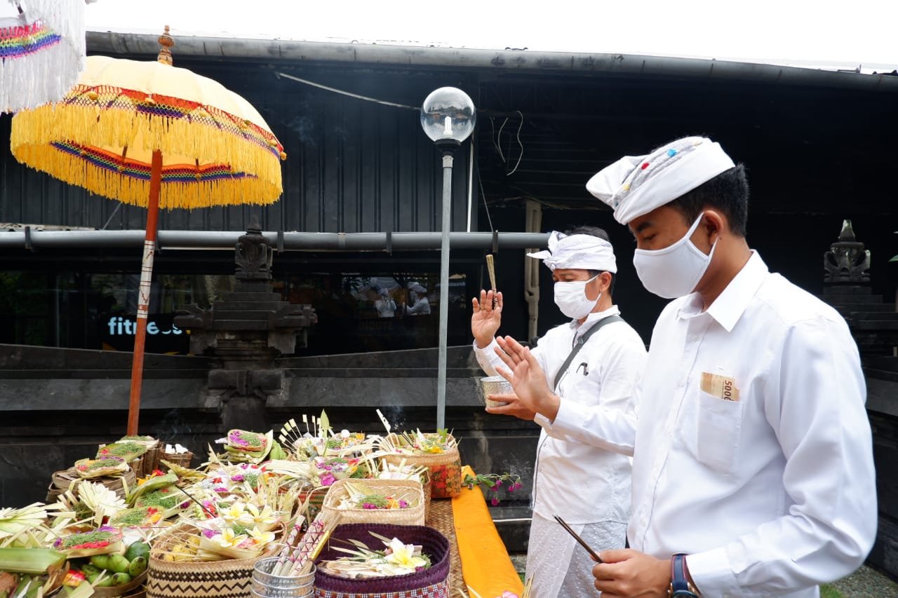 Pegawai KPP Pratama Denpasar Barat mengadakan upacara piodalan di Pura Kertha Dana KPP Pratama Denpasar Barat (Sabtu, 31/10) yang jatuh pada rahina Purnama Sasih Kelima dan Tumpek Krulut dengan tetap mematuhi Protokol Kesehatan Covid-19.