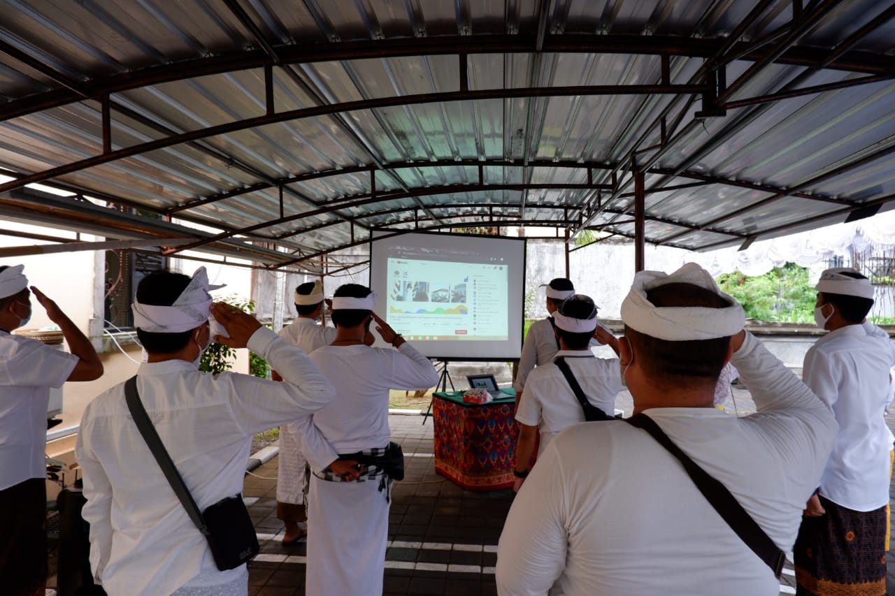 Sebelum melaksanakan upacara agama, para pegawai terlebih dahulu mengikuti upacara bendera melalui daring.