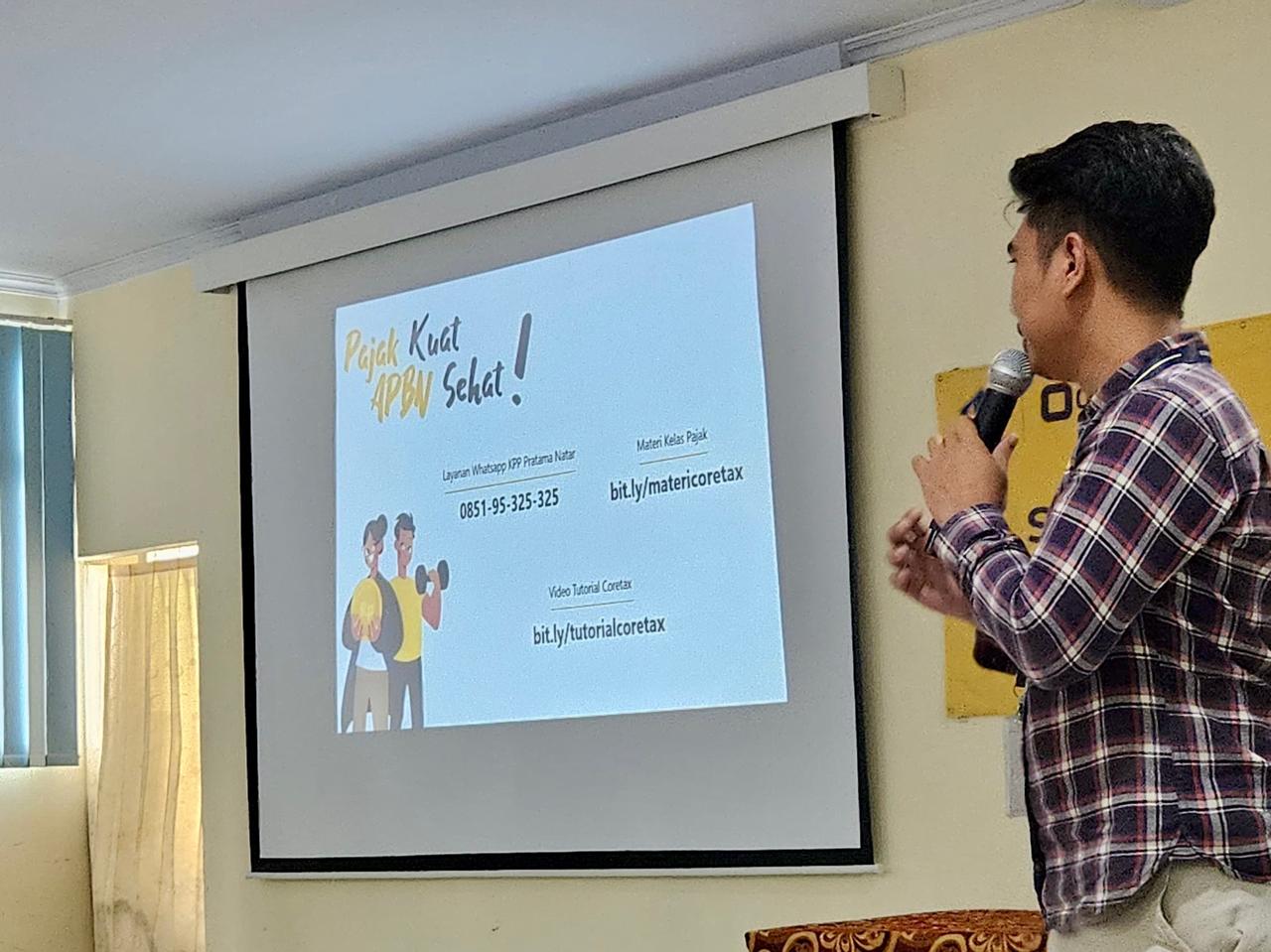 Kantor Pelayanan, Penyuluhan, dan Konsultasi Perpajakan (KP2KP) Kalianda berkolaborasi dengan Kantor Pelayanan Pajak (KPP) Pratama Natar menyelenggarakan kegiatan edukasi terkait Core Tax Administration System (CTAS) bertempat di Aula KP2KP Kalianda, Jalan Indra Bangsawan Nomor 42, Way Urang, Kalianda, Lampung Selatan, Lampung (Kamis, 24/10).