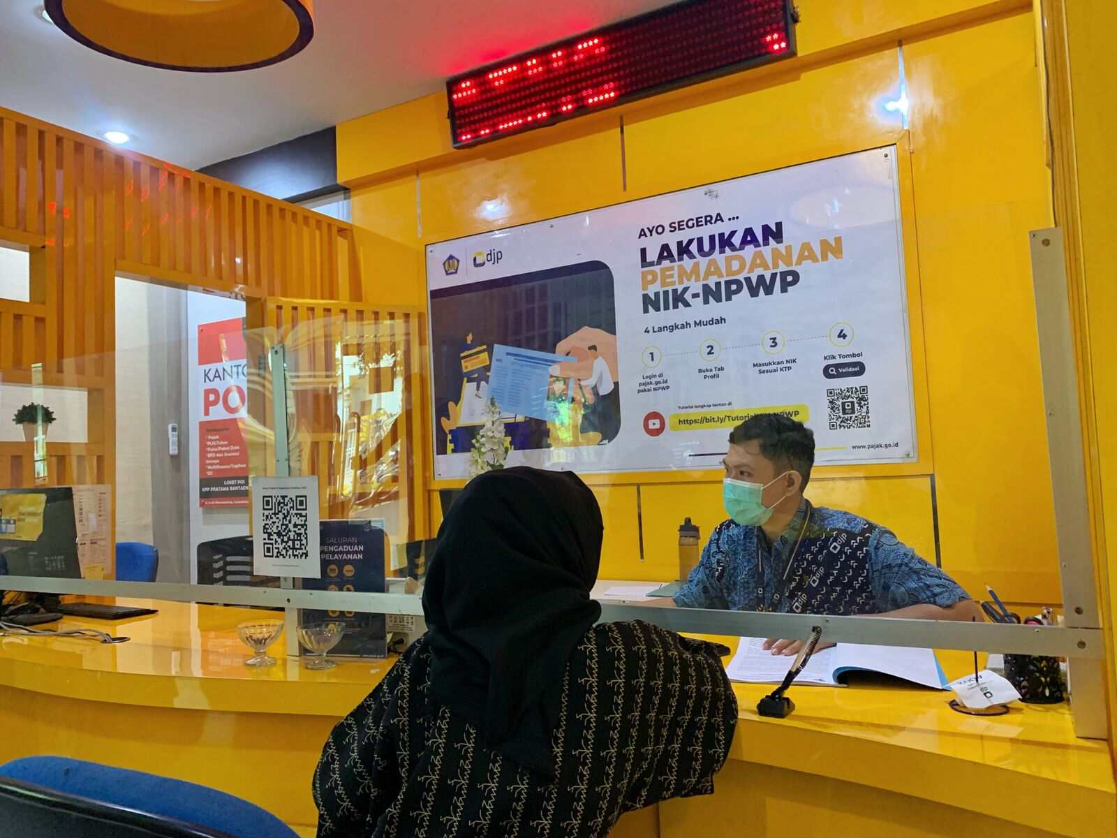 Kantor Pelayanan Pajak (KPP) Pratama Bantaeng kedatangan Kepala Dinas Ketahanan Pangan Kabupaten Bantaeng Rahmania A untuk melakukan pemadanan Nomor Induk Kependudukan (NIK) sebagai Nomor Pokok Wajib Pajak (NPWP) di Tempat Pelayanan Terpadu (TPT) KPP Pratama Bantaeng (Senin, 2/1). Selain melakukan pemadanan NIK, Rahmania juga menyelesaikan kewajiban perpajakannya dalam pelaporan Surat Pemberitahuan (SPT) Tahunan dengan asistensi dari pegawai KPP Pratama Bantaeng.