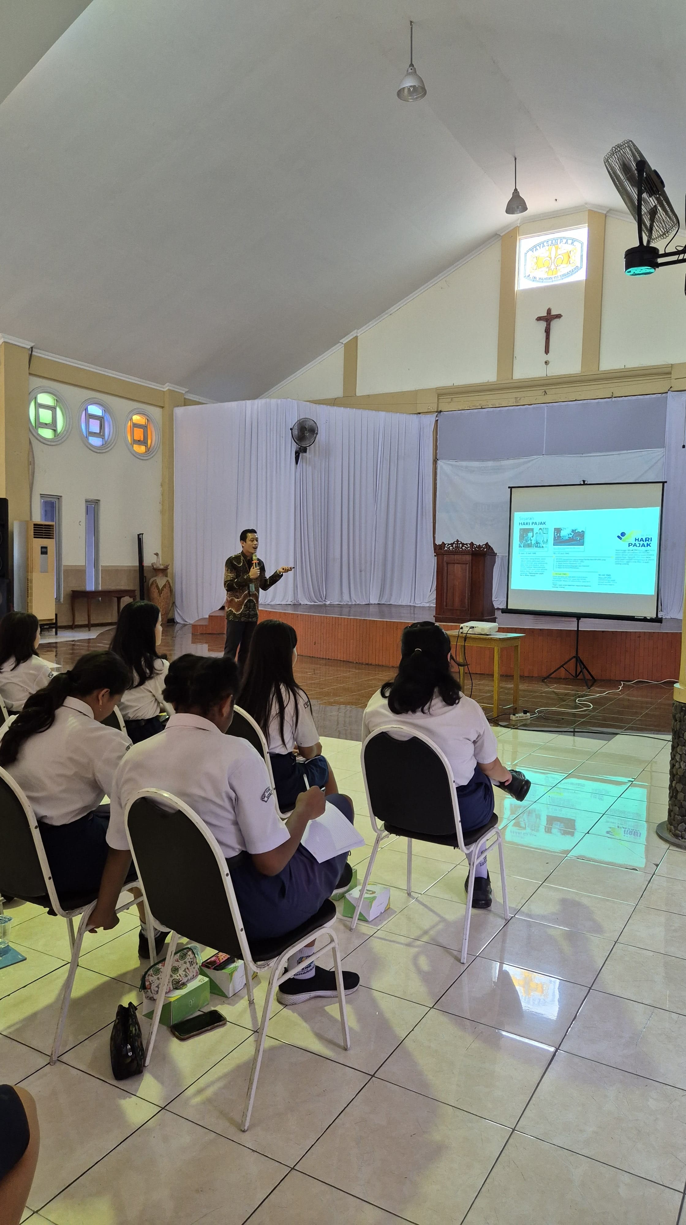 Untuk meningkatkan kesadaran pajak sejak dini bagi pelajar Sekolah Menengah Pertama (SMP) Yoannes XXII Semarang, Kantor Pelayanan Pajak (KPP) Pratama Semarang Candisari menggelar kegiatan Tax Goes To School (TGTS) di Aula Mikael SMP Yoannes XXIII Semarang, Kota Semarang (Selasa, 22/10).