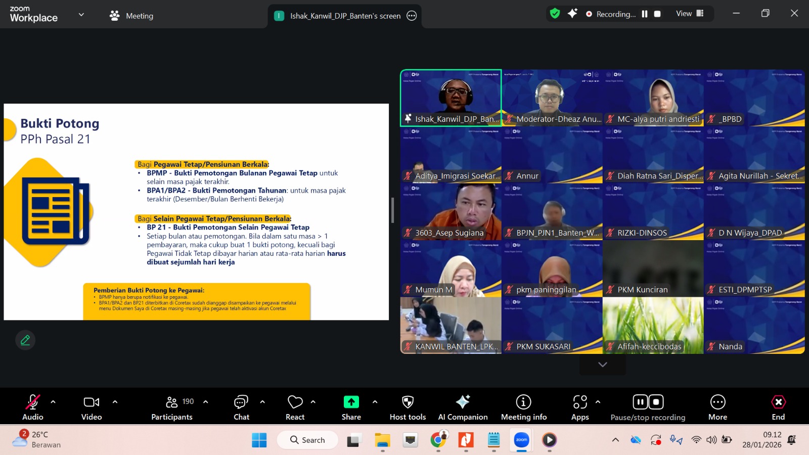 Kantor Wilayah Direktorat Jenderal Pajak (Kanwil DJP) Banten bersama Kantor Pelayanan Pajak (KPP) Pratama Tangerang Barat kembali menunjukkan komitmennya dalam meningkatkan kualitas pelayanan dengan menyelenggarakan kelas pajak secara daring terkait pembuatan bukti pemotongan pajak A2 bagi wajib pajak instansi pemerintah (Rabu, 28/1).