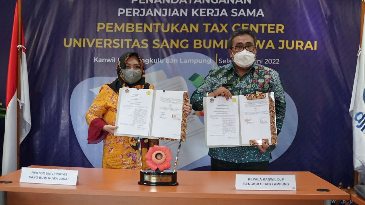 Universitas Sang Bumi Ruwa Jurai menjadi salah satu Perguruan Tinggi yang membentuk Tax Center dan ini merupakan bentuk kerja sama yang baik antara Direktorat Jenderal Pajak dan Perguruan Tinggi dalam hal meningkatkan pengetahuan dan kesadaran tentang hak dan kewajiban perpajakan civitas akademika dan masyarakat.