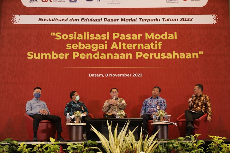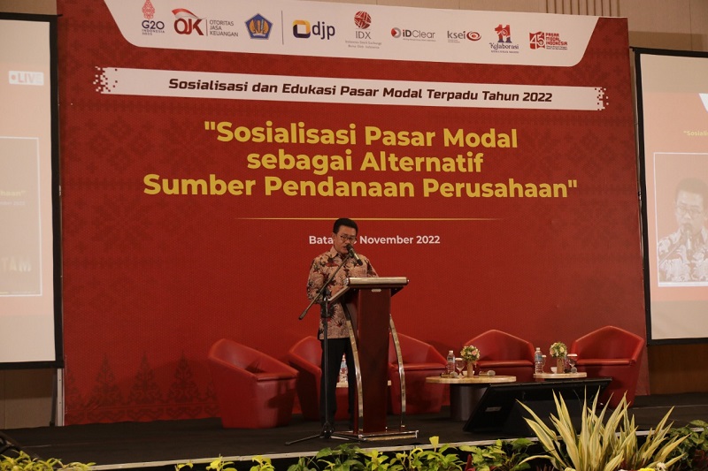 Direktorat Jenderal Pajak (DJP) bekerja sama dengan Otoritas Jasa Keuangan (OJK) dan Bursa Efek Indonesia (BEI) menyelenggarakan kegiatan Sosialisasi dan Edukasi Pasar Modal Terpadu Tahun 2022 di Radisson Golf & Convention Center Batam, Kota Batam, Kepulauan Riau (Selasa, 8/11). Kegiatan yang dihadiri oleh 150 perusahaan ini digelar secara hybrid melalui Zoom Meeting.