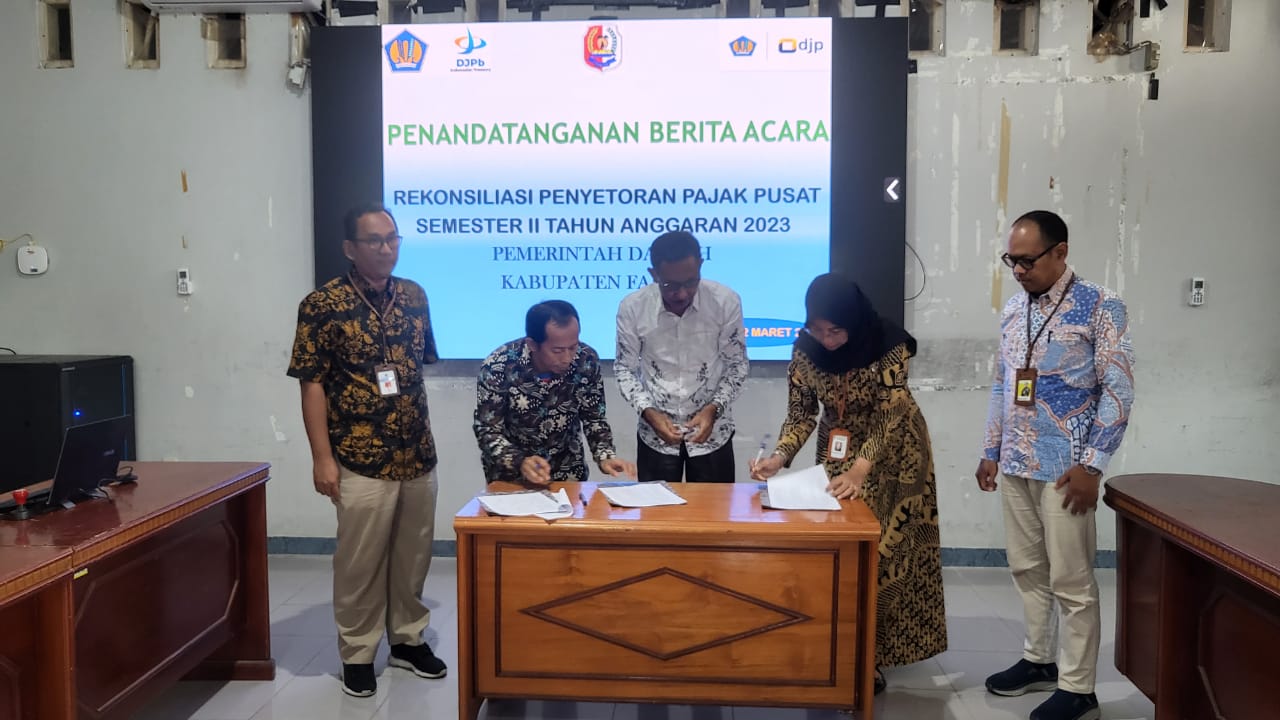 Kantor Pelayanan Pajak (KPP) Pratama Sorong bersama Kantor Pelayanan Perbendaharaan Negara (KPPN) Fakfak dan Badan Pengelola Keuangan dan Aset Daerah (BPKAD) Kabupaten Fakfak mengadakan kegiatan rekonsiliasi pajak pusat terkait pengeluaran atas beban Anggaran Pendapatan dan Belanja Daerah (APBD) Semester II Tahun Anggaran 2023 (22/3). Acara yang diadakan di Aula kantor BPKAD Kabupaten Fakfak ini dihadiri oleh Kepala Kantor Pelayanan, Penyuluhan, dan Konsultasi Perpajakan (KP2KP) Fakfak dan perwakilan dari KPPN Fakfak.
