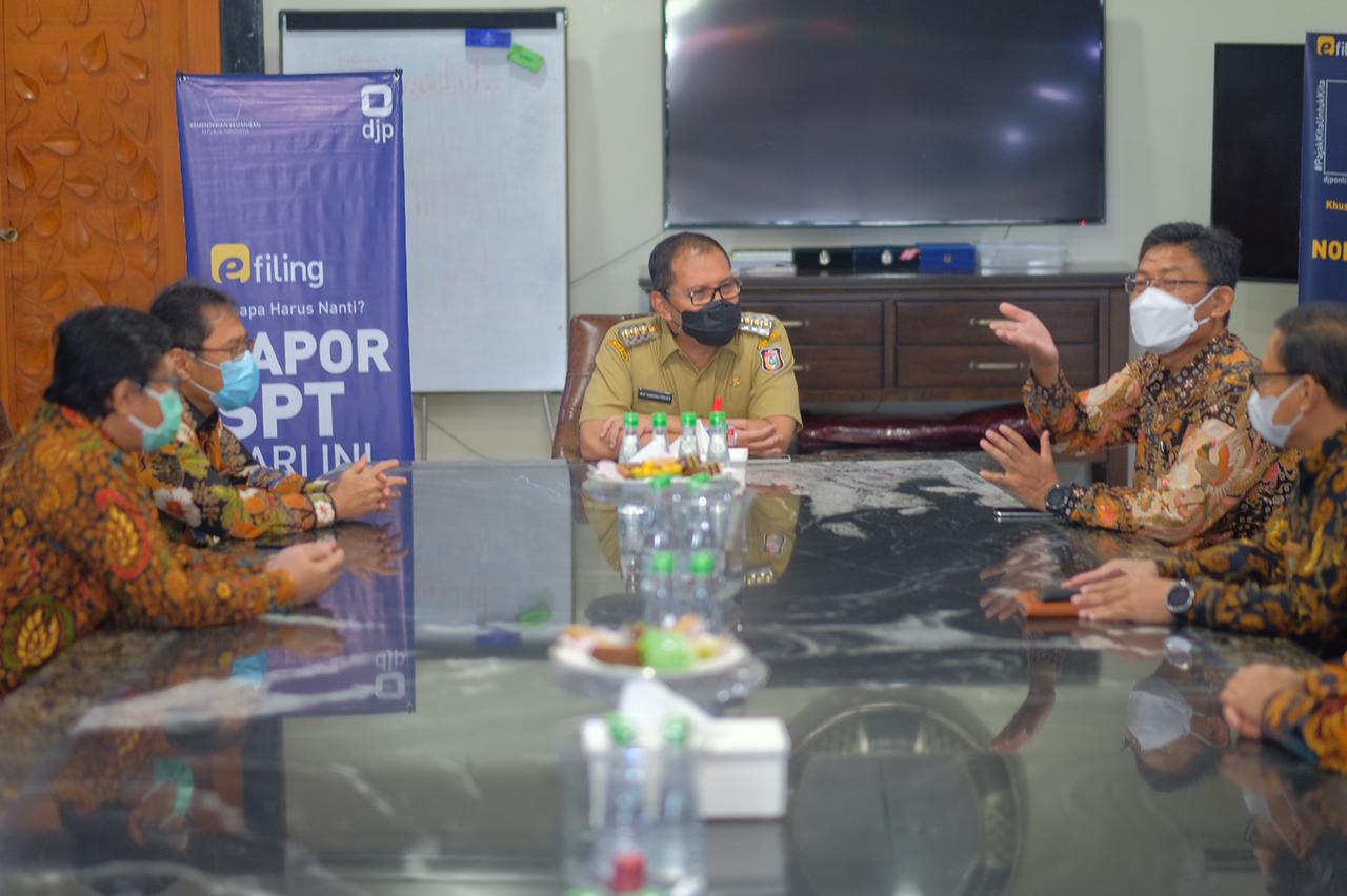 Kepala Kanwil DJP Sulselbartra Hantriono Joko Susilo beserta jajaran melakukan audiensi bersama Walikota Makassar Ir. H. Moh. Ramdhan Pomanto di kediaman pribadi Walikota Makassar, Kota Makassar (Senin, 8/3).