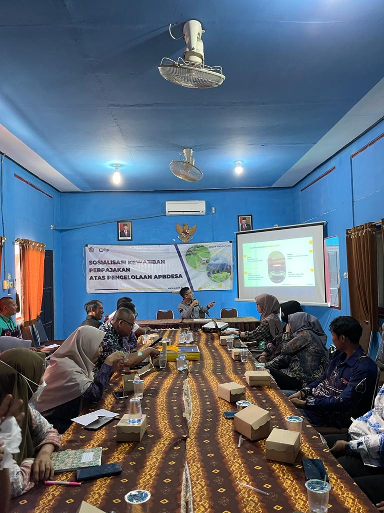 Penyuluh KP2KP Martapura menyampaikan bahwa para bendahara desa wajib memotong dan/atau memungut pajak atas transaksi yang dilakukan menggunakan APBDesa kemudian melaporkannya melalui aplikasi e-Bupot. Di sesi akhir, masing-masing bendahara desa menyampaikan rencana hingga realisasi kegiatan yang menggunakan APBDesa dalam rangka pembangunan di tahun 2023 dan membuat berita acara kesanggupan melaksanakan kewajiban perpajakan atas realisasi kegiatan belanja selama tahun 2023 sesuai dengan peraturan yang berlaku.