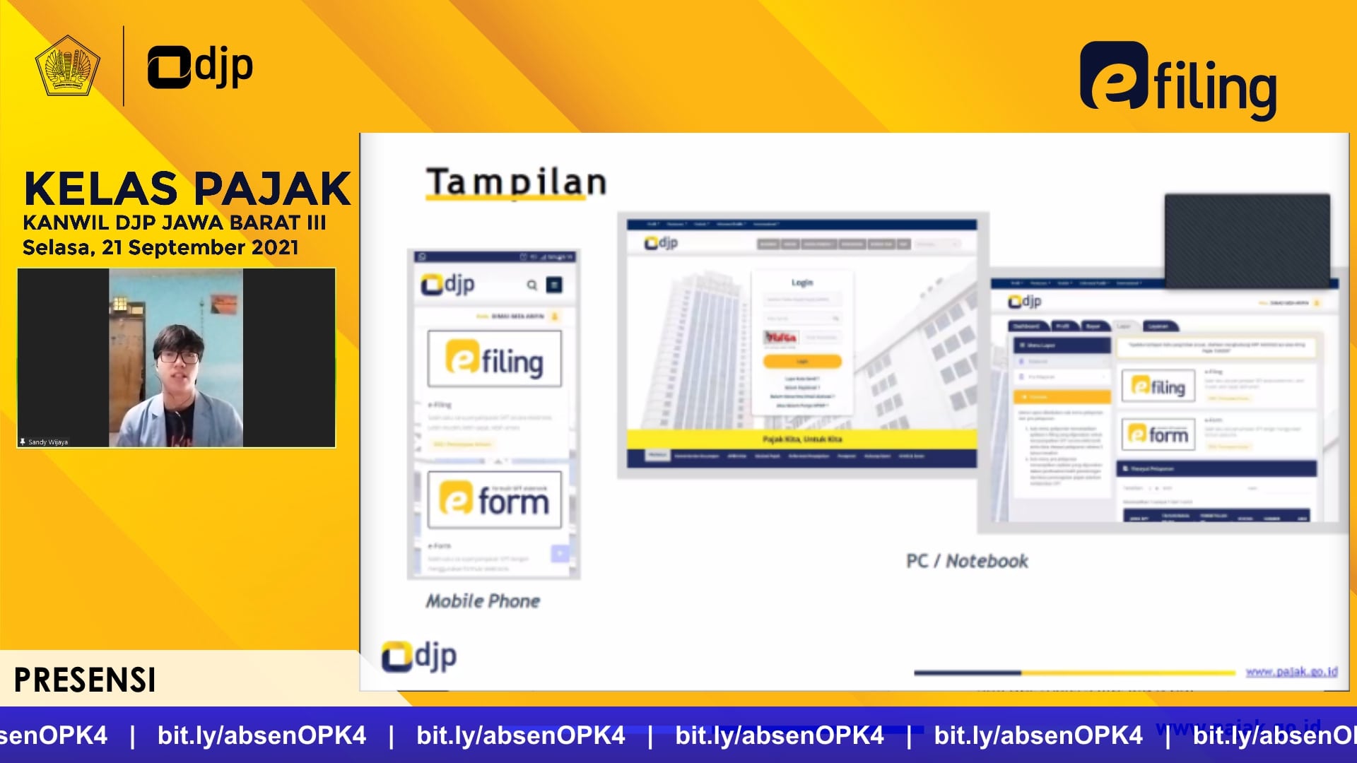 Dilakukan secara daring, kelas pajak ini diikuti oleh 26 Wajib Pajak Orang Pribadi di Wilayah Kota Bogor. Selain materi edukasi, peserta kelas pajak juga diisi dengan simulasi pengisian SPT Tahunan secara daring. Sebelum kegiatan diakhiri, peserta berkesempatan untuk berdiskusi dan mengajukan pertanyaan terkait materi yang telah disampaikan. Salah satu wajib pajak yang bergabung mengaku senang dan terbantu dengan adanya sosialisasi SPT Tahunan ini.