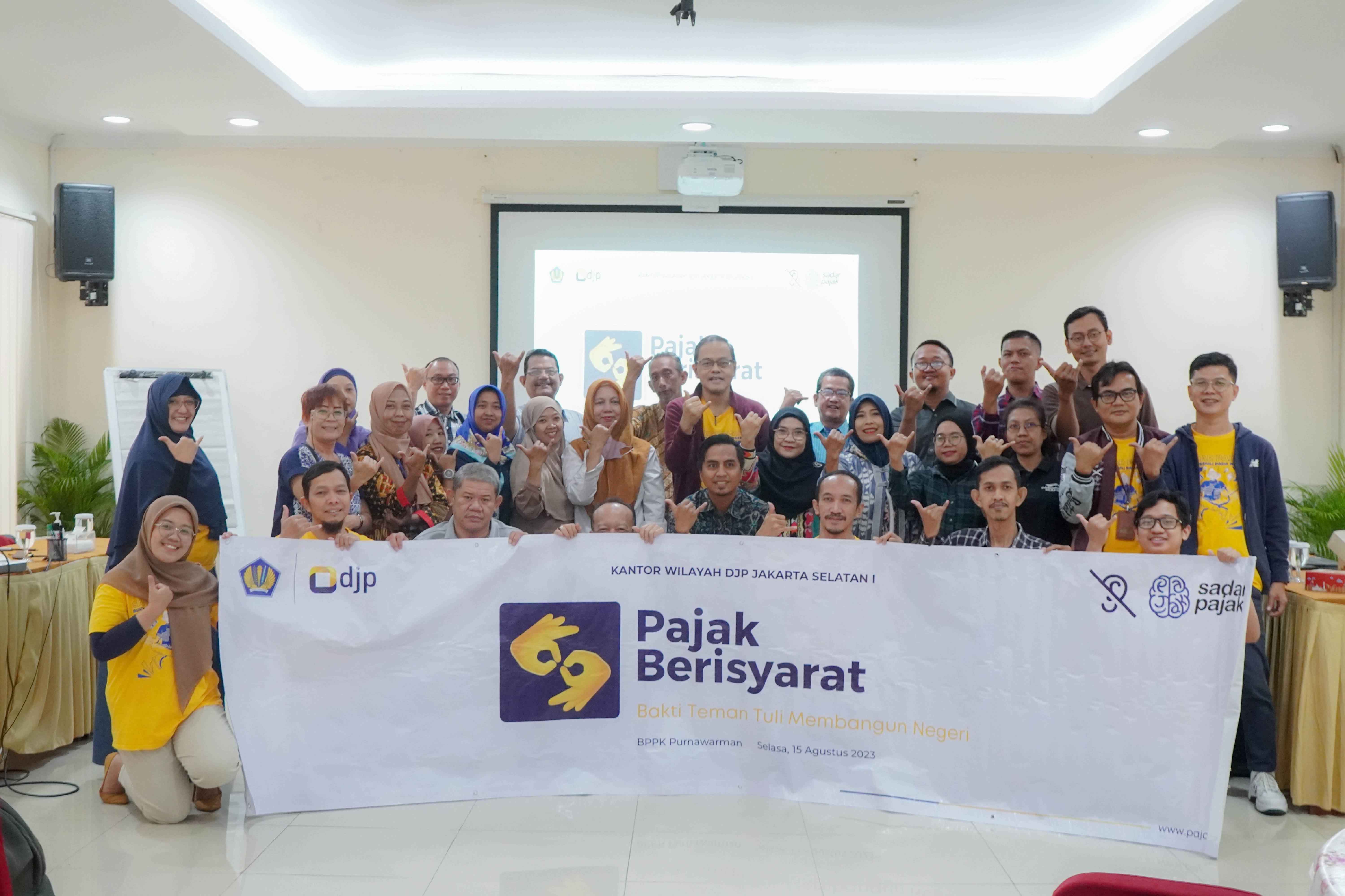 Kantor Wilayah Direktorat Jenderal Pajak (Kanwil DJP) Jakarta Selatan I, bekerja sama dengan Komunitas Gerakan untuk Kesejahteraan Tuna Rungu Indonesia (Gerkatin), mengadakan kegiatan Pajak Berisyarat bersama teman-teman tuli di Ruang Serbaguna D101 Gedung D Haryono Sumusdirdjo, BPPK Purnawarman, Kota Administrasi Jakarta Selatan (Selasa, 15/8).