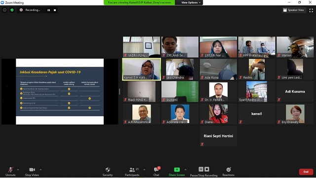 Untuk membangun karakter bangsa Indonesia yang sadar pajak, Kanwil Direktorat Jenderal Pajak (DJP) Kalimantan Barat bersama dengan Universitas Tanjungpura (Untan) melaksanakan kegiatan sharing session dan bimbingan teknis inklusi kesadaran pajak melalui webinar di ruang Bidang P2 Humas Kanwil DJP Kalimantan Barat (Rabu, 01/07).