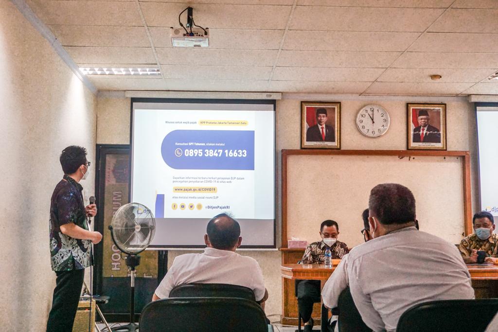 Toto Hendiarto selaku Kepala KPP Tamansari Satu mendapat kesempatan untuk menyampaikan sambutan dan materi terkait rencana sinergi antara KPP Pratama Jakarta Tamansari Satu dengan pemda di wilayah Kecamatan Tamansari. Acara selanjutnya pemaparan materi terkait SPT Tahunan Orang Pribadi yang dibawakan oleh Urip Widodo selaku Kepala Seksi Pengawasan dan Konsultasi IV yang bertujuan agar para hadirin dapat melaporkan SPT Tahunan tepat waktu.