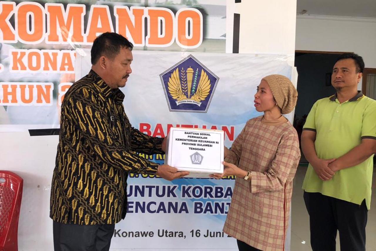 Banjir yang melanda Kabupaten Konawe dan Kabupaten Konawe Utara ini berjarak sekitar 100 kilometer dari pusat Kota Kendari. Bencana ini merupakan dampak dari hujan yang terus menerus terjadi sehingga menyebabkan air meluap dari sungai. Sumbangan korban banjir yang disalurkan berasal dari donasi berupa uang dari seluruh pegawai Kementerian Keuangan Sulawesi Tenggara. Donasi ini kemudian dibelanjakan dalam bentuk kebutuhan pokok seperti makanan, minuman, pakaian, serta kebutuhan penunjang tempat pengungsian berupa tikar dan sejenisnya. Sumbangan tersebut merupakan kebutuhan korban banjir baik korban yang berusia dewasa maupun anak-anak atau balita.