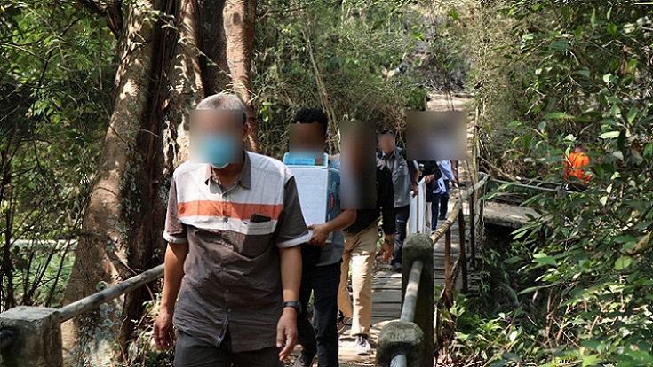 Sebelum melakukan penyitaan, tim penyidik DJP berkoordinasi dengan Kepala Desa setempat. Dengan didampingi oleh salah seorang aparat desa setempat dan kerabat tersangka, tim penyidik DJP menuju lokasi objek yang akan disita. Untuk sampai ke titik objek yang akan disita, tim penyidik DJP harus menyeberangi sungai dengan melintasi jembatan kayu.