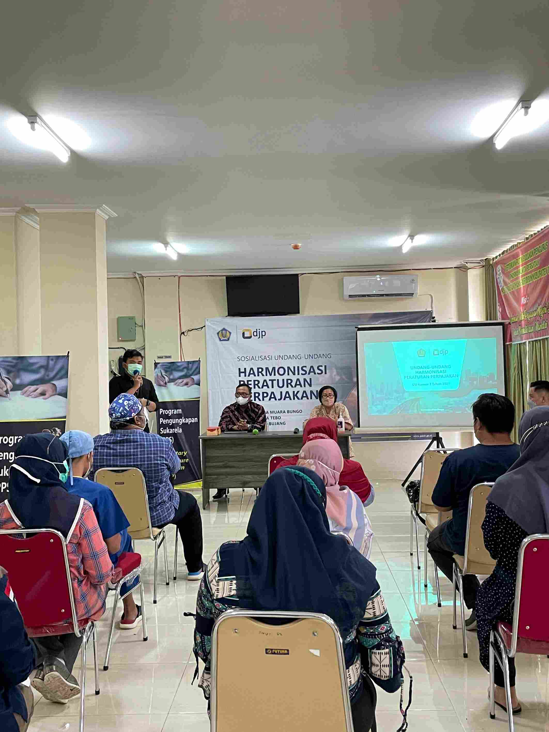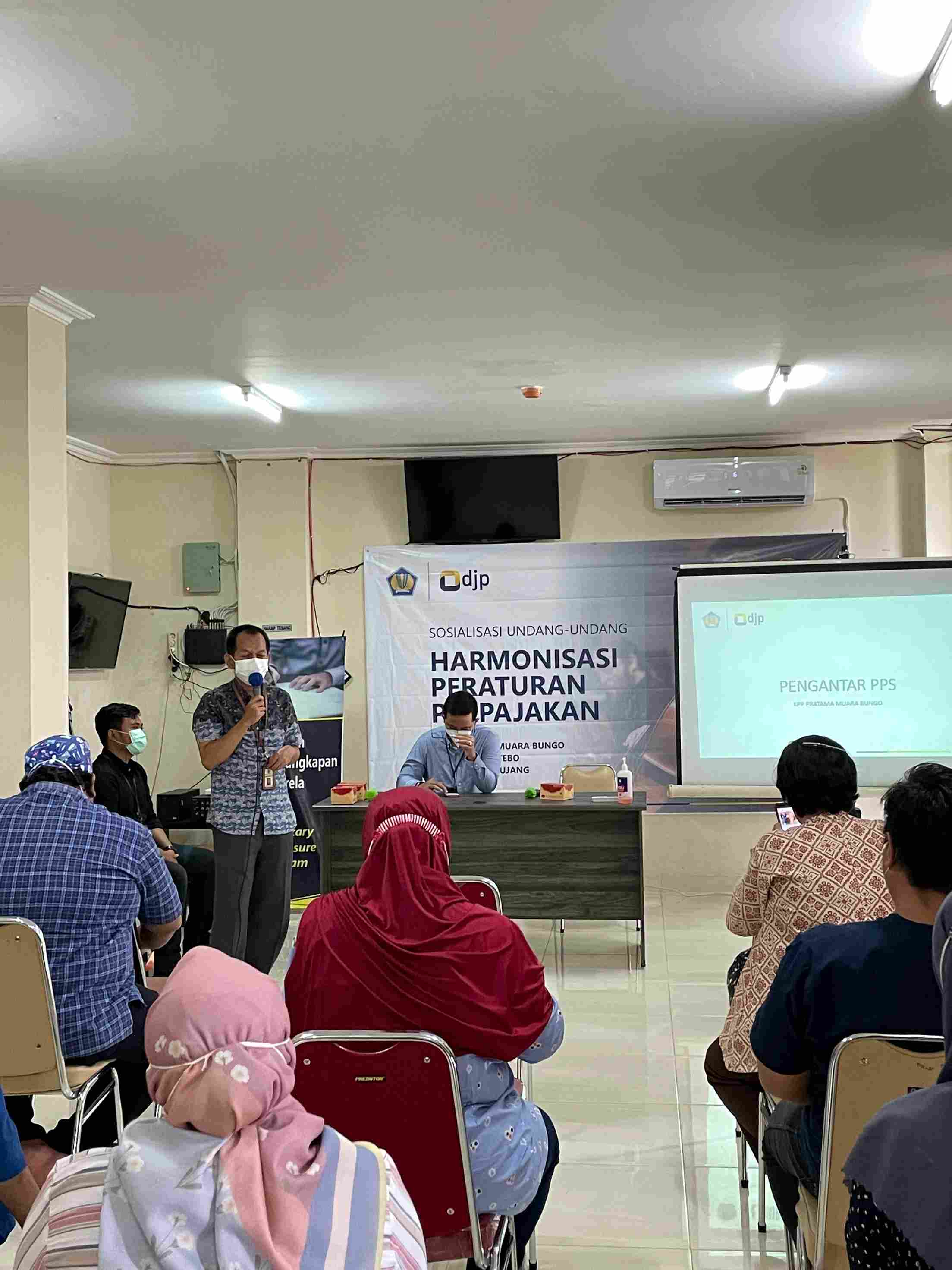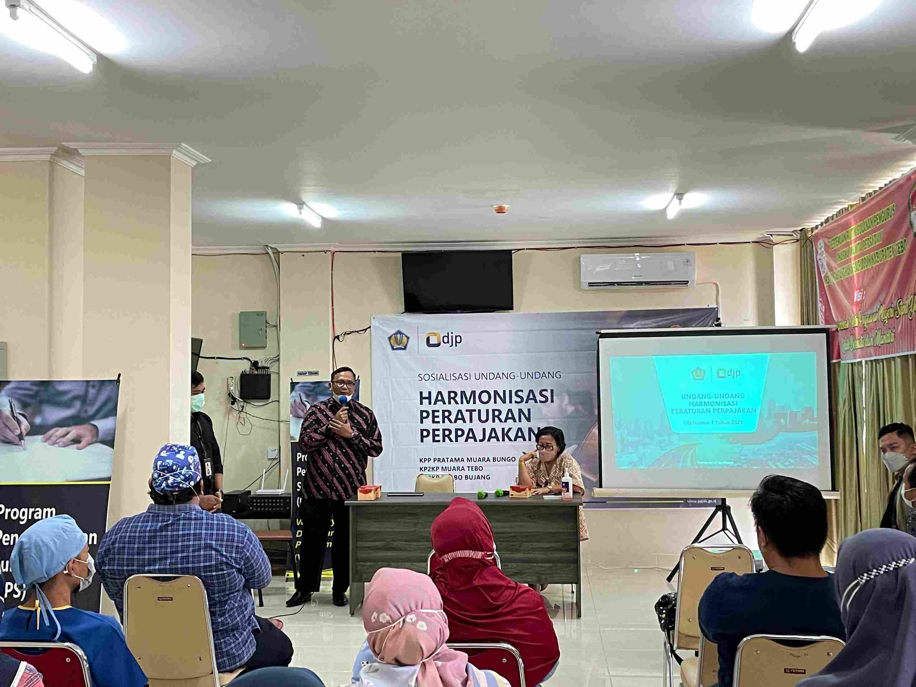 Rumah Sakit Umum Daerah (RSUD) Sultan Thaha Kabupaten Muara Tebo mengikuti acara edukasi Undang-Undang Harmonisasi Peraturan Perpajakan (UU HPP) yang diadakan oleh Kantor Pelayanan Pajak (KPP) Pratama Muara Bungo, Kantor Pelayanan, Penyuluhan, dan Konsultasi Perpajakan (KP2KP) Muara Tebo dan KP2KP Rimbo Bujang, di aula RSUD Sultan Thaha Tebo yang dihadiri oleh kurang lebih 17 dokter RSUD Sultan Thaha (Kamis, 9/12).