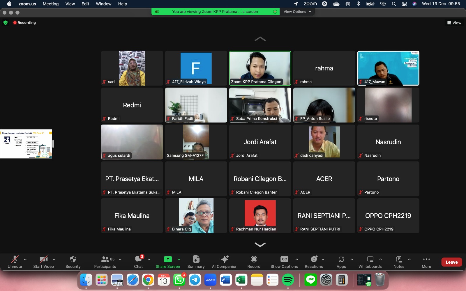 Kantor Pelayanan Pajak (KPP) Pratama Cilegon menyelenggarakan sosialisasi dengan tema "Lebih Mengenal Pajak Penghasilan Pasal 21" kepada Wajib Pajak Badan secara daring. Pemberian materi dilakukan langsung dari KPP Pratama Cilegon, Jalan Jenderal Ahmad Yani No. 126 Sukmajaya, Sukmajaya, Kecamatan Jombang, Kota Cilegon, Banten (Rabu, 13/12).