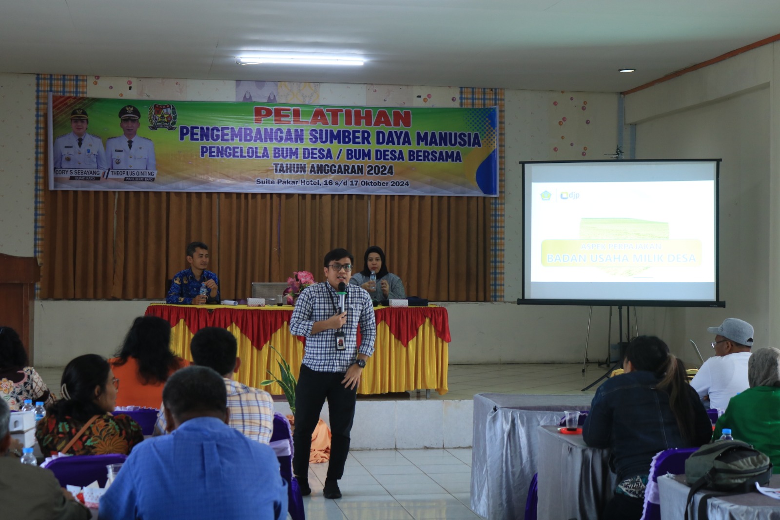 Dinas Pemberdayaan Masyarakat Desa (PMD) Kabupaten Karo bekerja sama dengan Kantor Pelayanan Pajak (KPP) Pratama Kabanjahe mengadakan Sosialisasi Kewajiban Perpajakan kepada Badan Usaha Milik Desa (BUMDes) bertempat di di Aula Suite Pakkar Hotel yang berada di Jalan Jamin Ginting Nomor 142 Dusun V Desa Raya, Kec. Berastagi, Kab. Karo Provinsi Sumatera Utara (Kamis, 17/10).