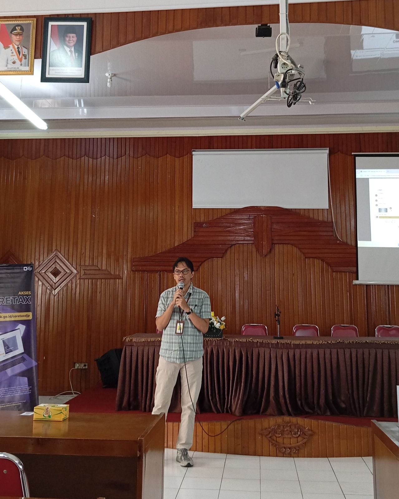 Materi teknis disampaikan oleh penyuluh pajak, Rico Satria Adipradana. Ia menjelaskan secara rinci tahapan aktivasi akun Coretax DJP, penggunaan kode otorisasi (sertifikat elektronik), hingga praktik langsung pelaporan SPT Tahunan. Peserta juga dibimbing mengantisipasi kendala umum, seperti validasi data dan pengisian bukti potong agar proses pelaporan berjalan lancar.