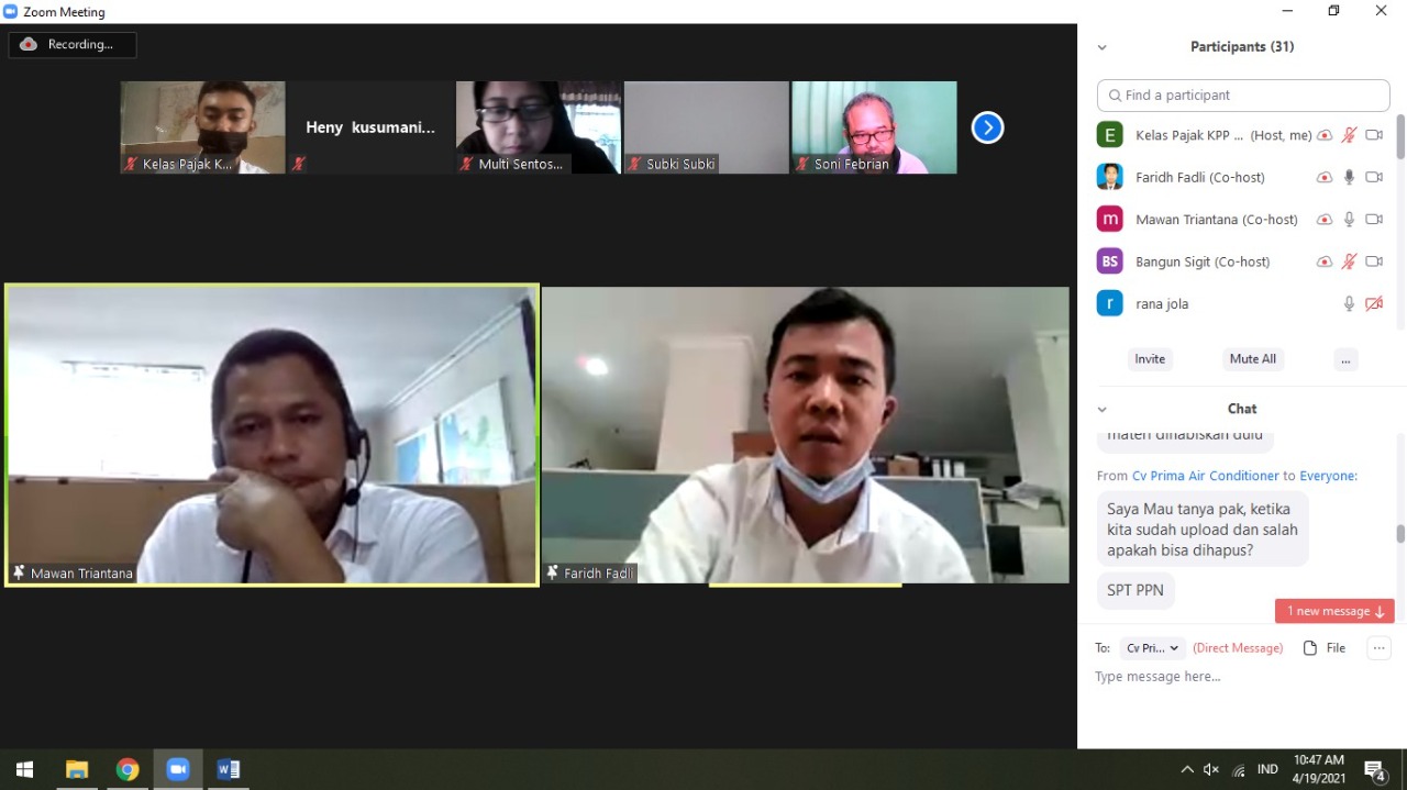 Kantor Pelayanan Pajak (KPP) Pratama Cilegon kembali membuka kelas pajak daring gratis dengan media aplikasi Zoom dengan mengangkat tema pelaporan SPT Masa PPN dan SPT Tahunan di Cilegon (Rabu, 17/2).